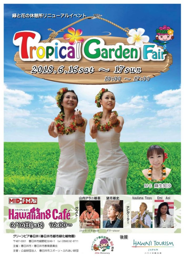 「トロピカルガーデンフェアー」というハワイイベントが6/16 &17日に行われ、6/16(土)にゲスト出演させていただきます